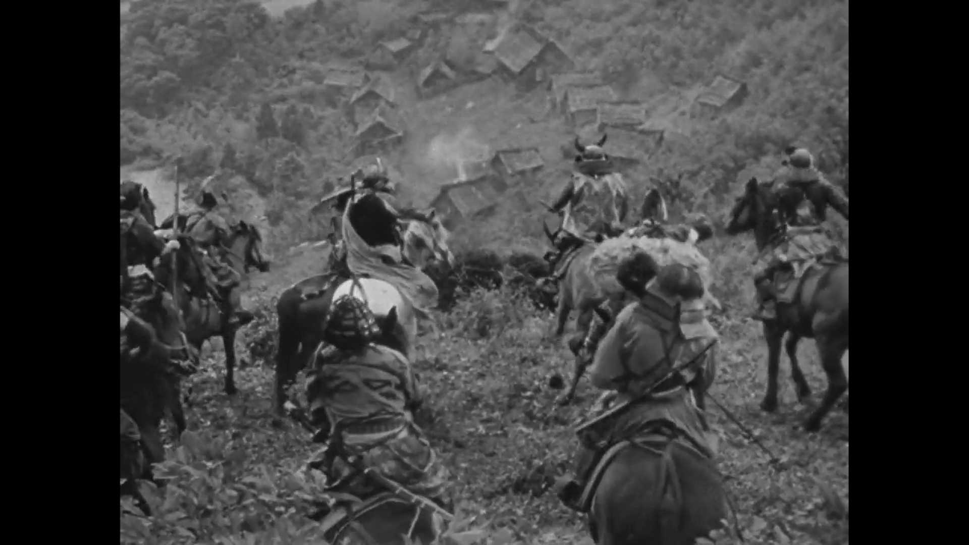 This shot is right at the beginning of Seven Samurai, and it’s funny in the way it’s shown. When you think about it, the shot is not just tough to pull off, but near impossible. The village is almost at a right angle, which means the hill they’re on is either steep, or there’s a scaffolding constructed to be steep, yet safe for the actor.