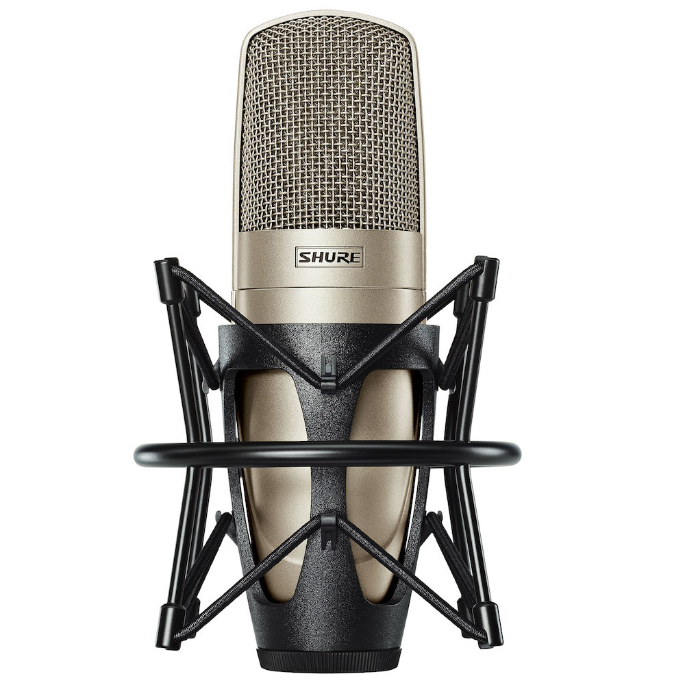 The Neumann TLM 102 BK (Amazon, B&H) can handle sound pressure and process extreme volume up to 144 dB without distortion. It has a built-in pop shield which reduces vocal plosives. Neumann also claims that it has gentle treble lift for silky highs.