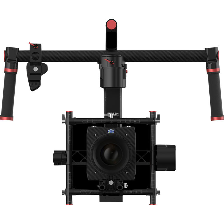 The gimbal weighs about 7.8lbs without the battery, and has a maximum payload of 20lbs. So it is strong enough to carry heavy camera setups such as the RED and ARRI Alexa cameras.