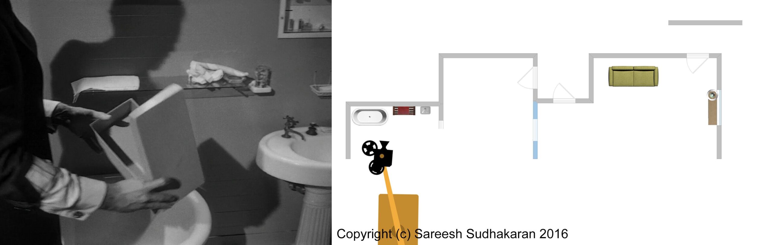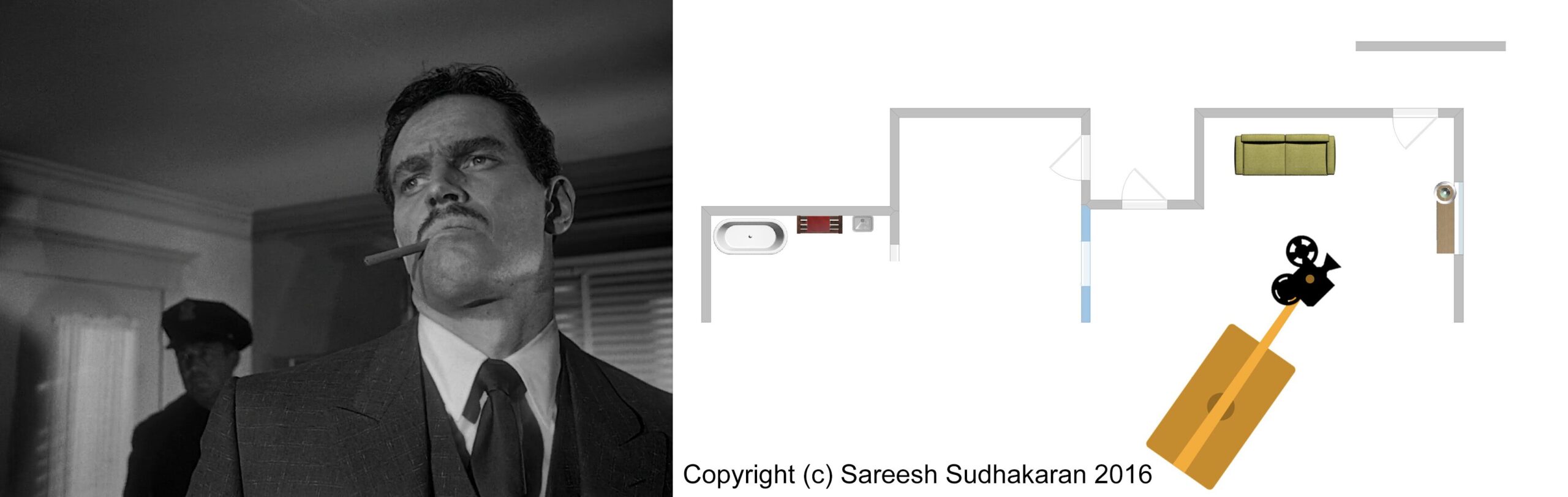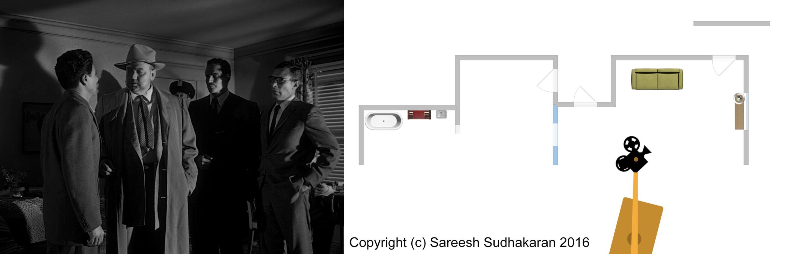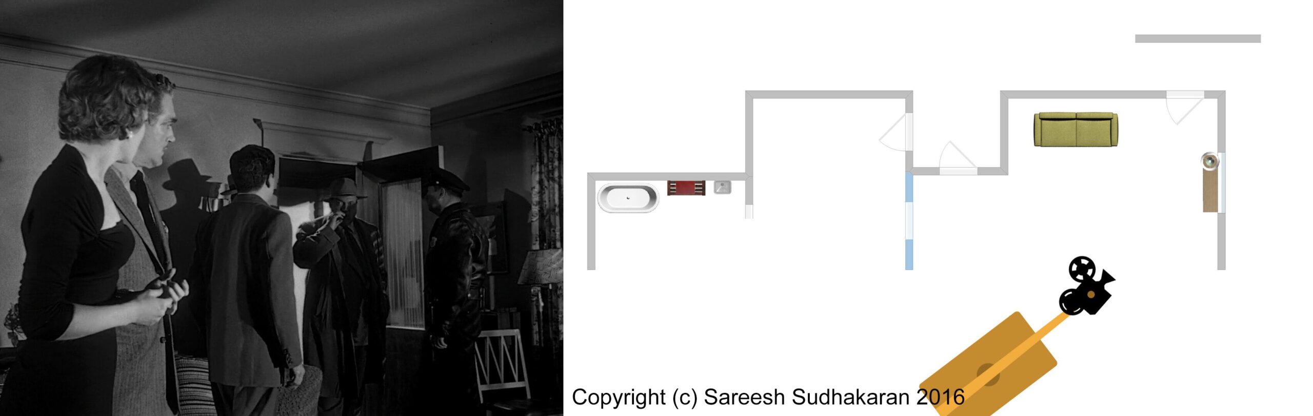 Important: The apartment plan isn’t to scale. And, the exact crane movements, angles and lighting positions are all guesstimates. This is for informational purposes only. Please do not quote or use it as a serious or authentic study or resource. I will only be covering sections one and three.