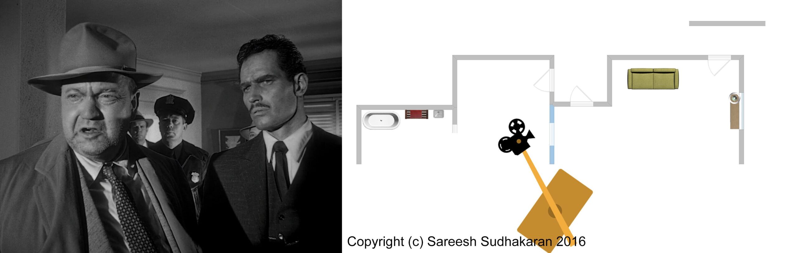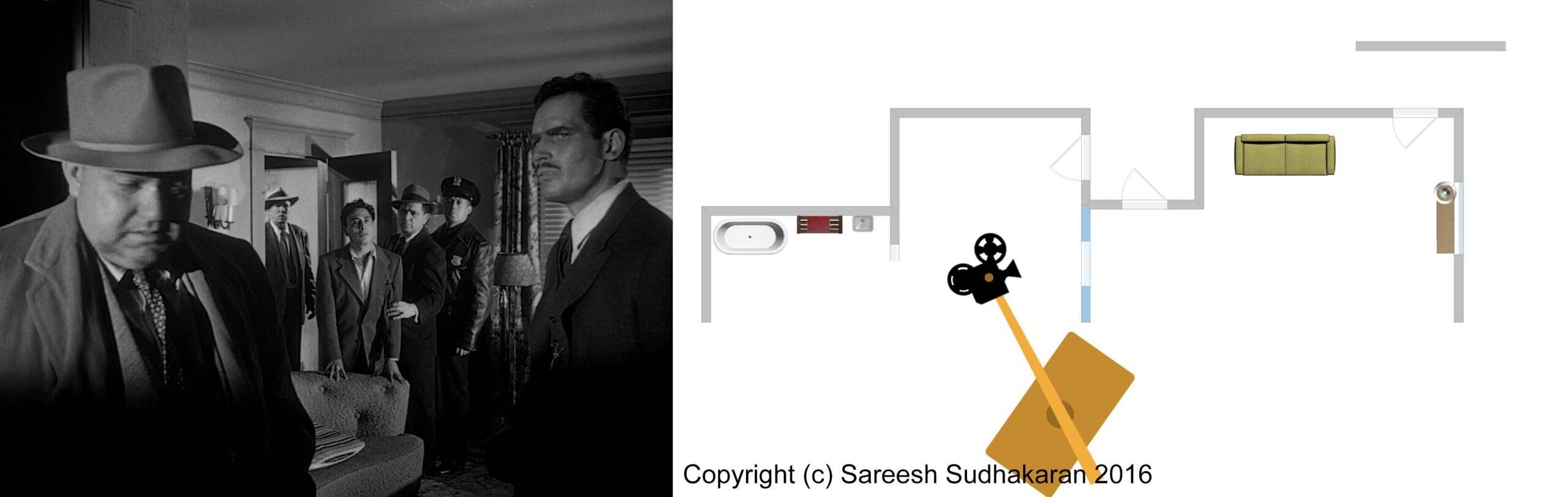 Analysis of the Crane Marks and Lighting positions in the Sanchez’s apartment scene, Touch of Evil