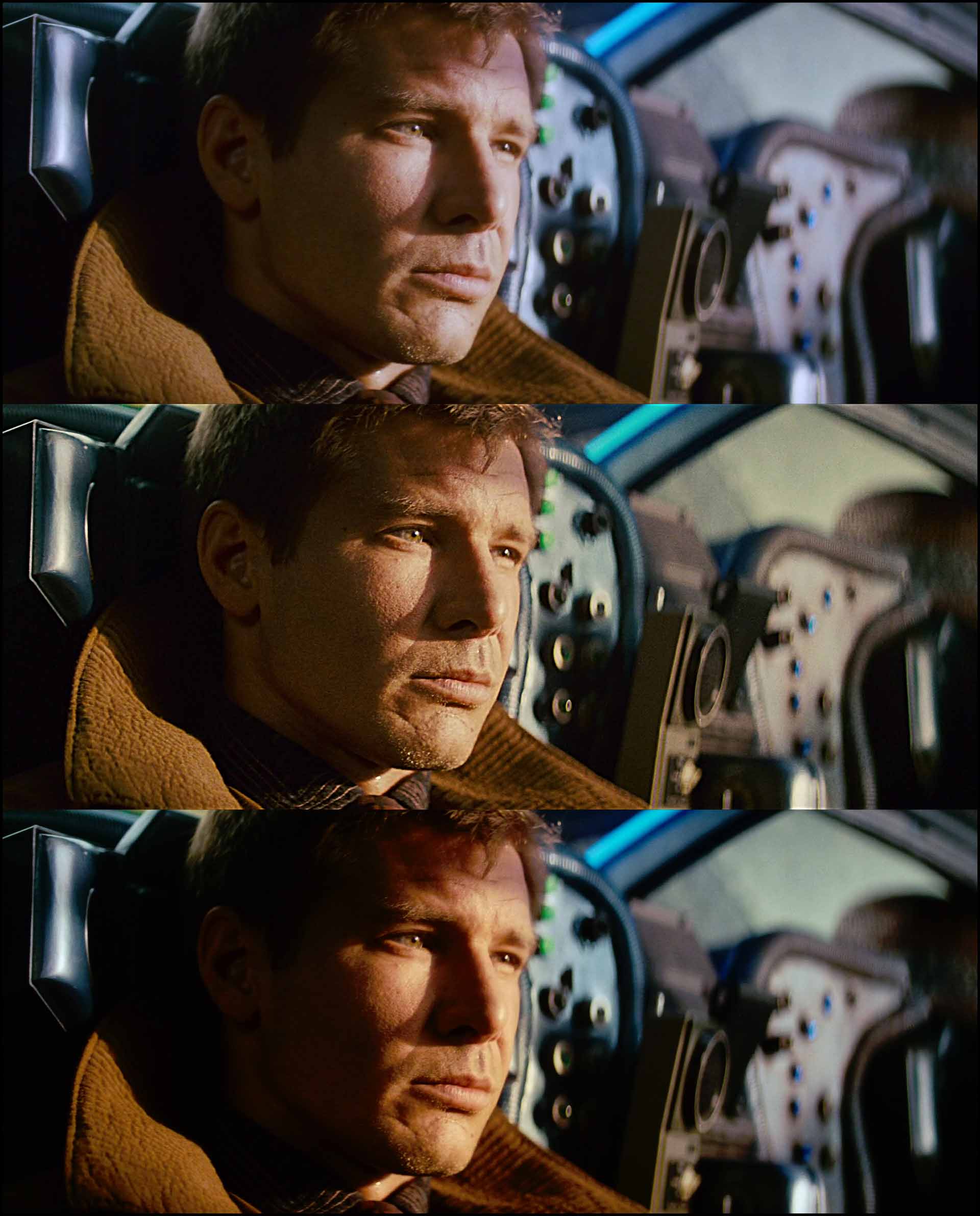 Here’s an example of a frame from Blade Runner (1982) in three versions. Which is the original film version? Other than those who actually worked on the film, I don’t think anybody can tell.