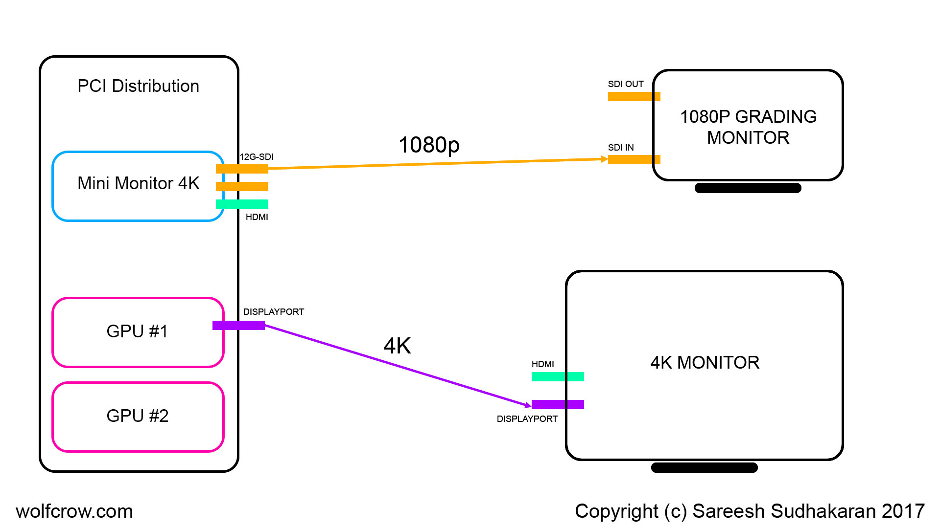 - Displayport, HDMI or SDI? There are so many flavors here, for the choices I’ve made above I need Displayport 1.2 or HDMI 2.0 or 12G-SDI.