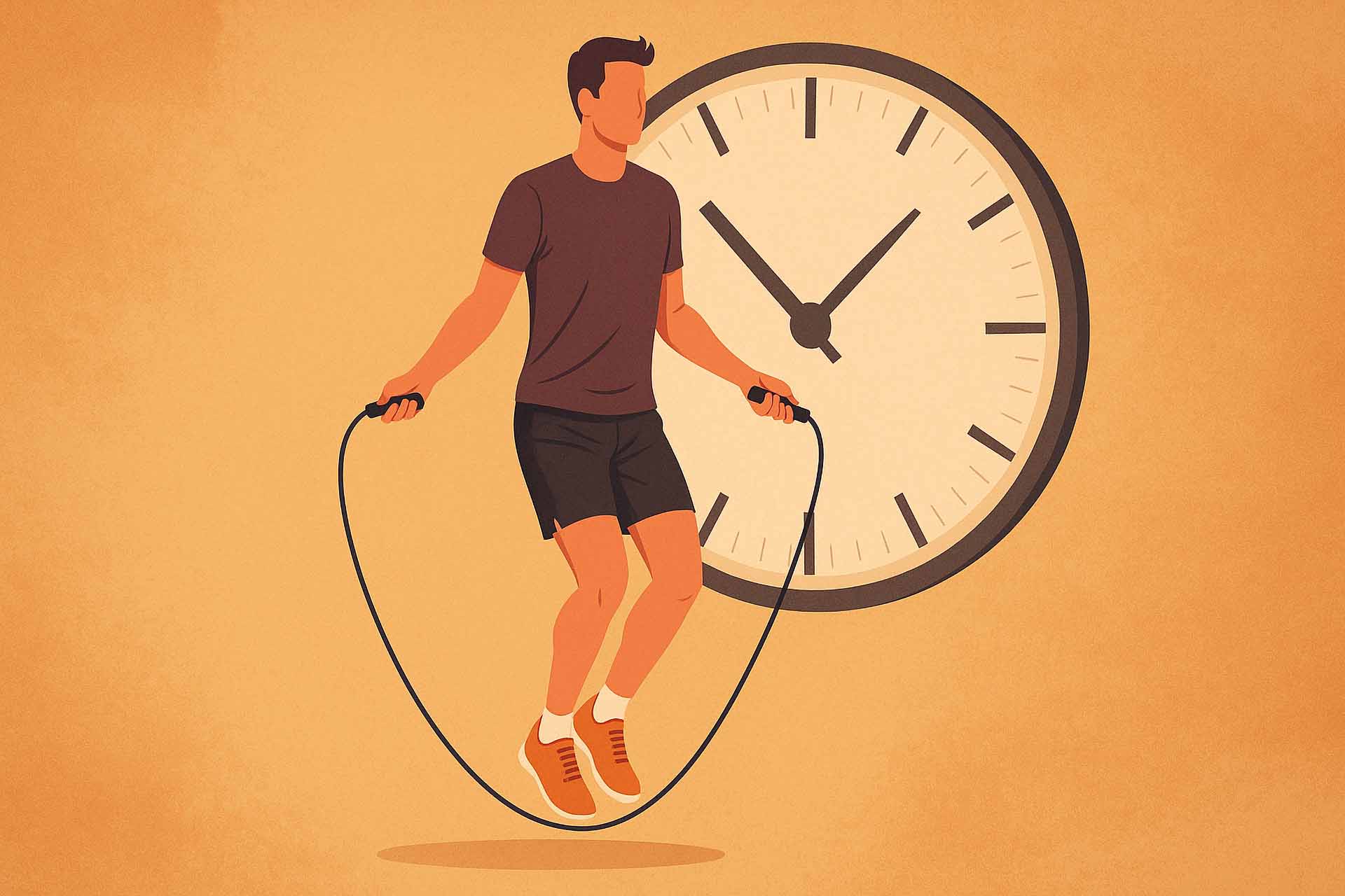 Time: 45 minutes. Cost: $100 for 6 months – $20 for the Nike jumping rope and $70-100 for Nike running shoes.