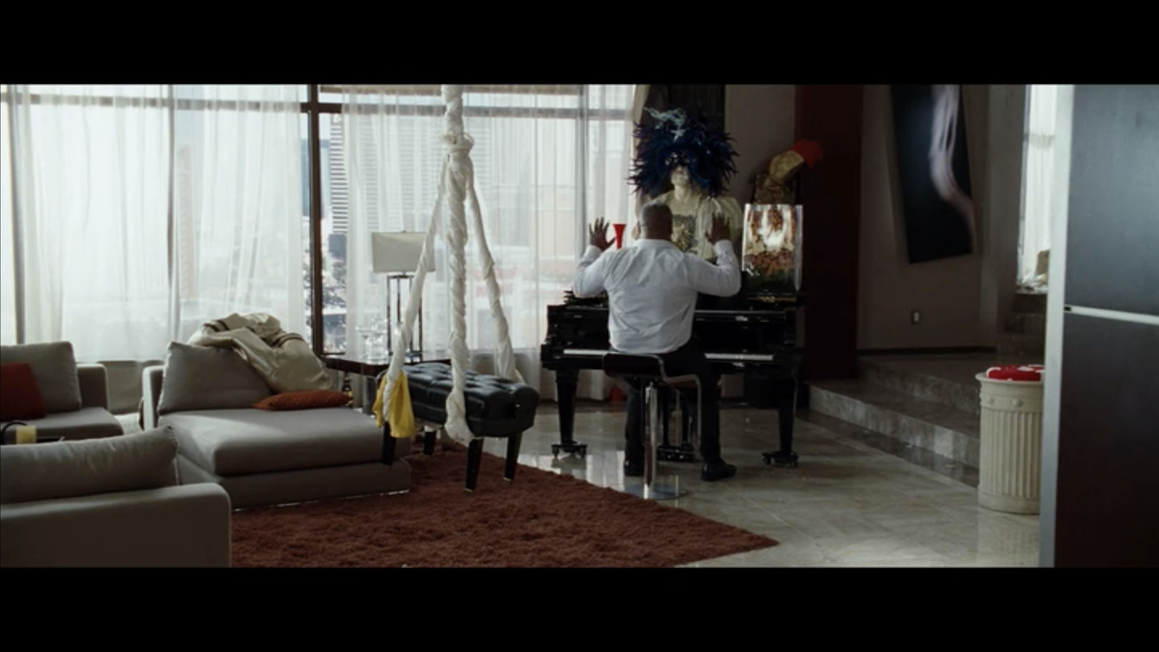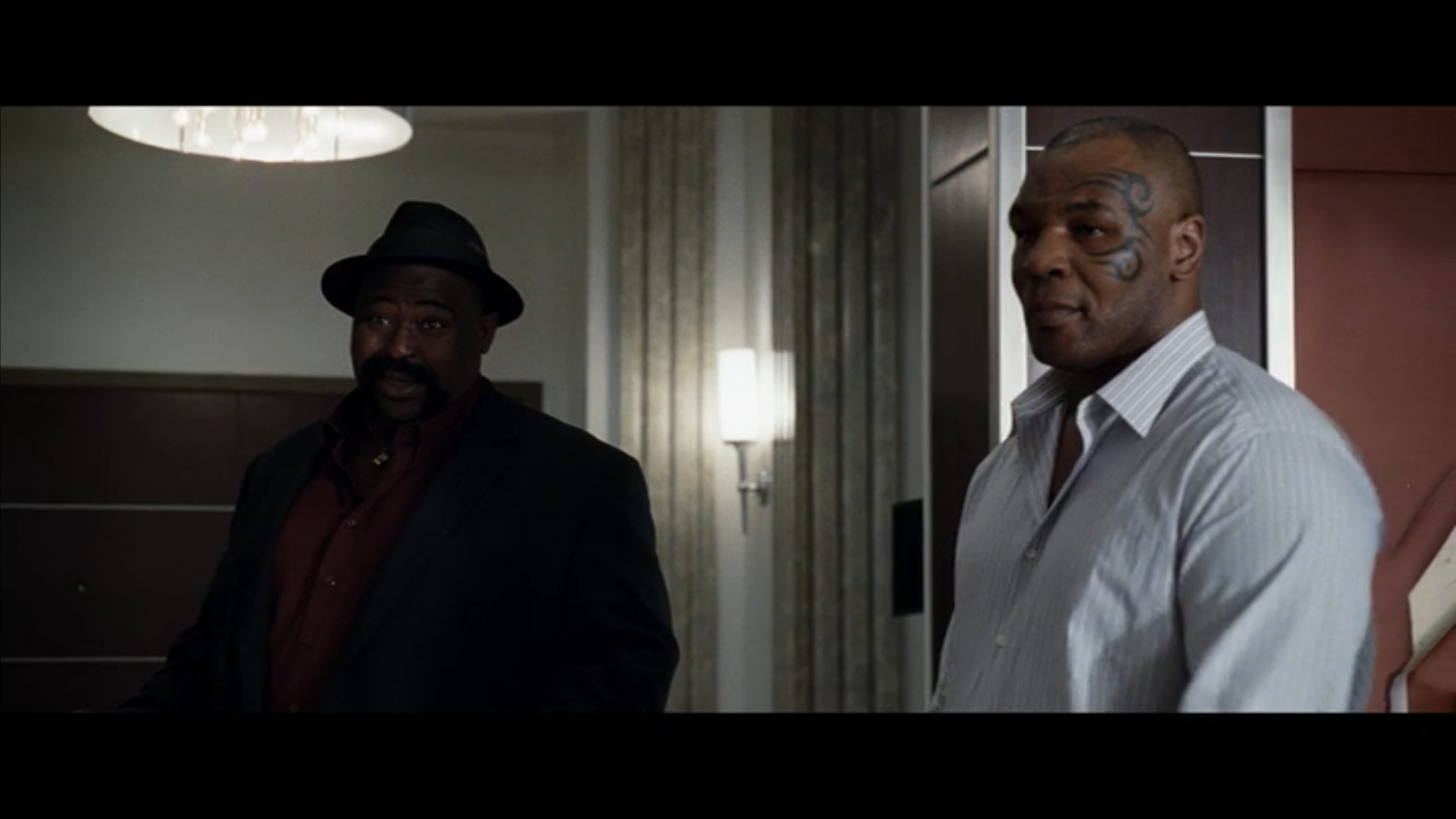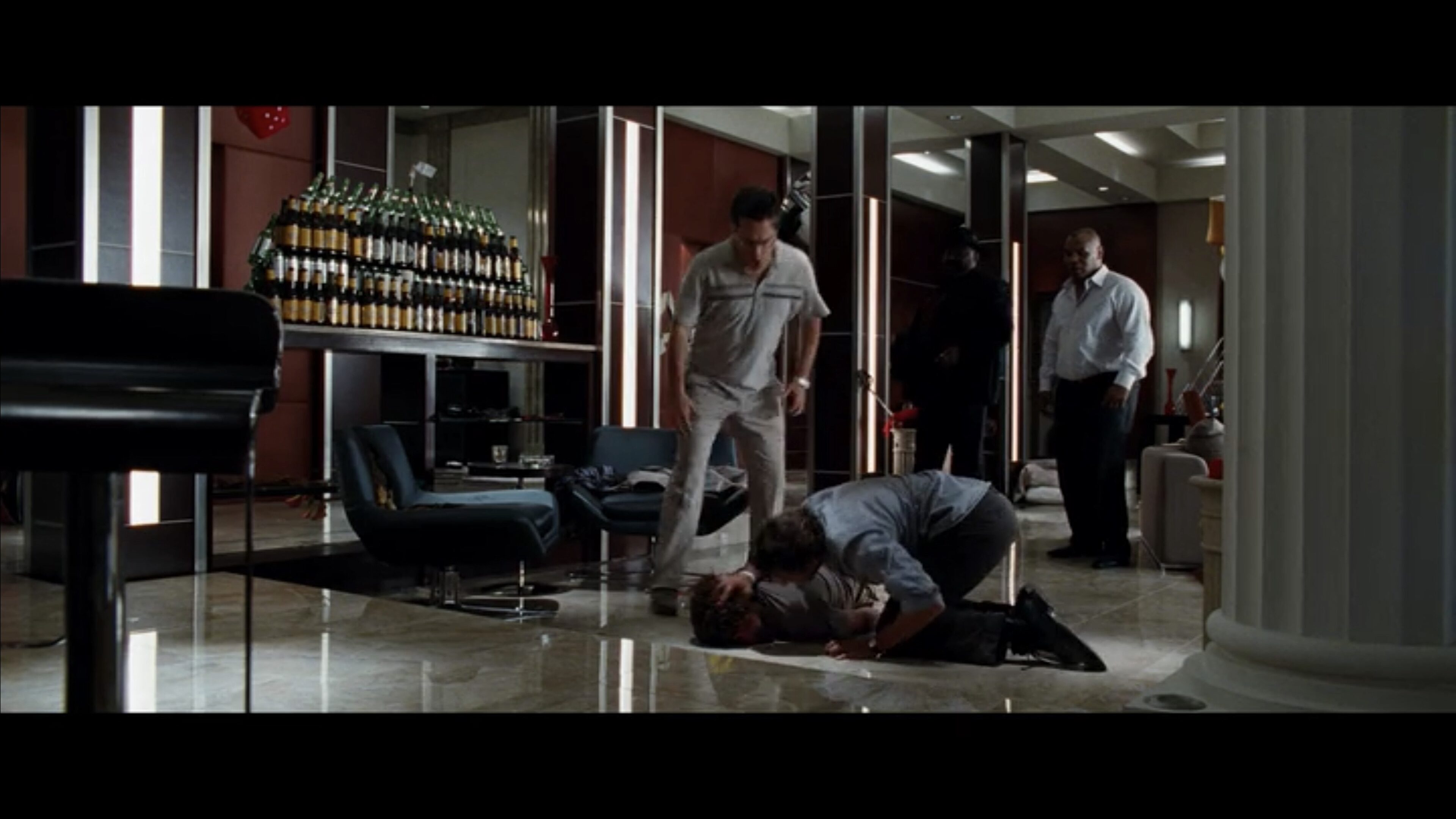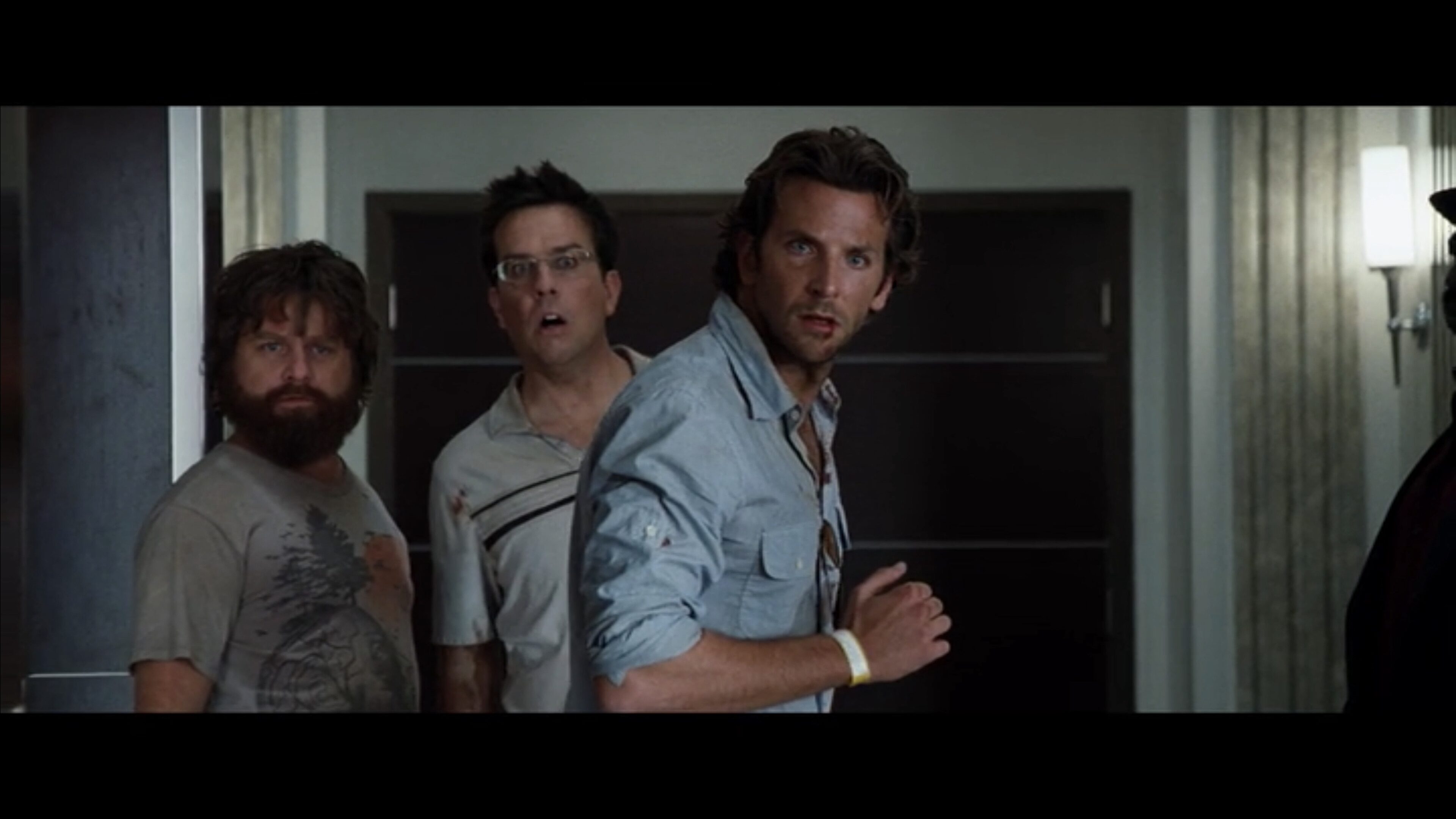 Here are a few examples from Hangover, directed by Todd Phillips, from the scene where Mike Tyson shows up. These are not necessarily masters, but just examples of a wide shot: