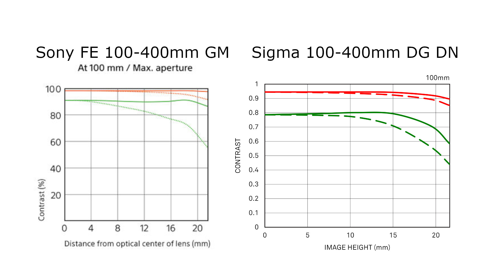 | Lens | Sony FE 100-400mm f/4.5-5.6 GM OSS | Sigma 100-400mm f/5-6.3 DG DN OS Contemporary |