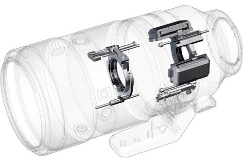 The Sony FE 100-400mm f/4.5-5.6 GM OSS (Amazon, B&H) lens does have 5 axis Optical Steady Shot image stabilization. Using it with a camera that has IBIS (like the Sony Alpha 1 or the a7S III) you get even better stabilization.