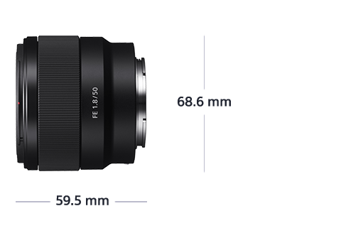 The Sony FE 50mm f/2.8 Macro (AmazonB&H) has a diameter of 70.81mm and a length of 71mm. It weighs around 236 grams. This is definitely on the lighter side.