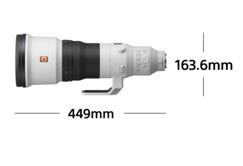 The Sony FE 600mm f/4 GM OSS (Amazon, B&H) has a diameter of 163.6mm and a length of 449mm. It weighs around 3040 grams. It is a bit heavy and can be a problem if you don’t have a heavy tripod to set it on.