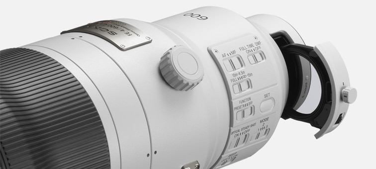 Optical image stabilisation is built in, making it easier to capture sharp images when shooting handheld. In addition to the Mode 2 setting that is provided for panning shots, the SEL400F28GM features a new Mode 3 setting with an advanced algorithm that ensures easier framing when following moving subjects. Mode 3 provides optimum stabilisation for tracking and shooting dynamic, unpredictable sports action. 5-axis image stabilisation becomes available when the SEL400F28GM is used with an ? body that features in-body image stabilisation.