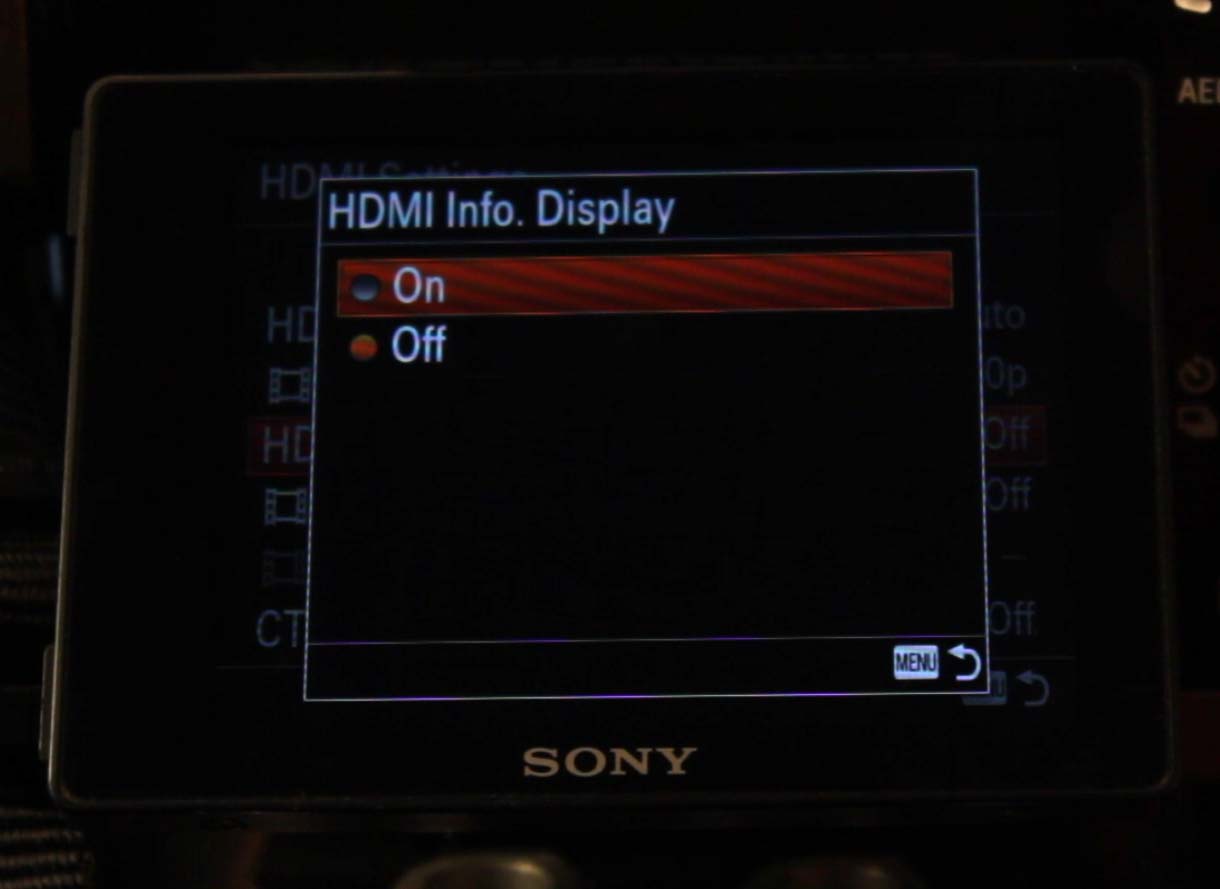 Even if you have HDMI Info. Display Off, if you playback a clip the camera goes back to overlaying the menu and you have to redo the On-Off again. Stupid!