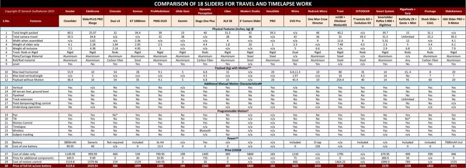 How hard can it be to find the right slider? Here’s a comparison of 18 professional camera sliders for travel and timelapse work.